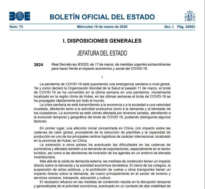 El Real Decreto-Ley 8/2020, aprueba nuevas medidas laborales extraordinarias para la emergencia sanitaria generada por el COVID-19