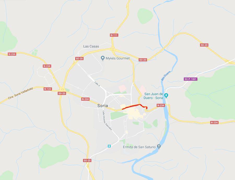 Los tramos cedidos se localizan entre las calles Condes de Gómara y Ángel Terrel (815 metros, entre los p.k. 350,230 y 350,937 de la N-234)) y entre la calle López de Yanguas y la glorieta de la Avda. de Valladolid con la calle Eduardo Saavedra (332 metros, entre los p.k. 351,183 y 351,500 de la N-234).