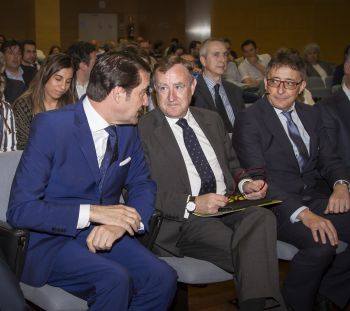 El presidente y el director general del Clúster de Hábitat y Construcción Eficiente de Castilla y León (AEICE), Alejandro Miranda y Enrique Cobreros, respectivamente, han presentado hoy en Valladolid un ambicioso plan para la rehabilitación del parque residencial de la Comunidad denominado Acción 3R, arropados por sus colaboradores entre los que se encontraba el presidente de la Cámara de Contratistas de CyL, Enrique Pascual. La inauguración ha estado a cargo del consejero de Fomento y Medio Ambiente, Juan Carlos Suárez-Quiñones.