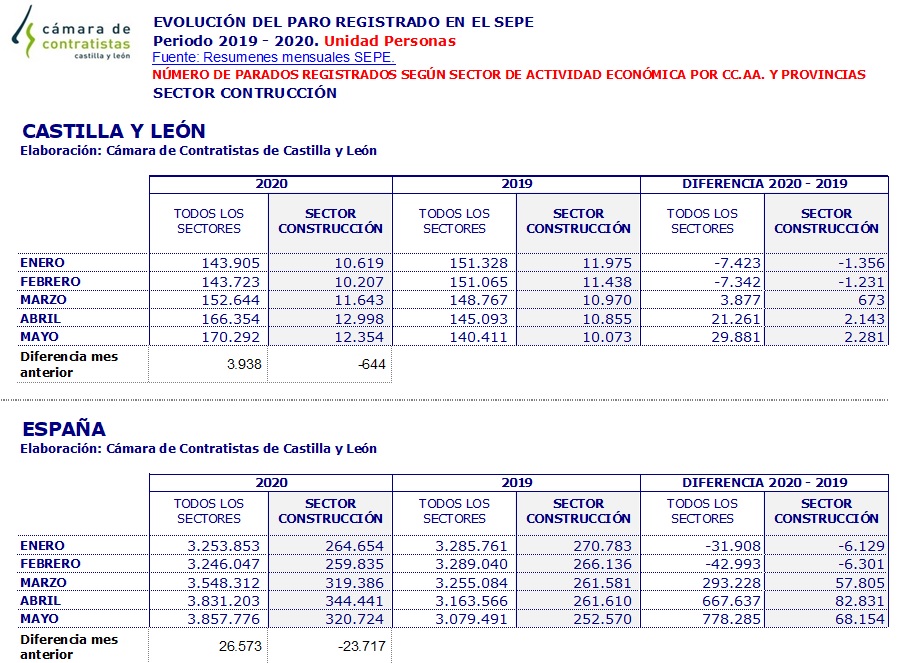Cerrados los datos de paro del SEPE del mes de mayo, Castilla y León cuenta con 3.938 parados más que en el mes anterior, pero el sector construcción ha conseguido recuperar 644 trabajadores, dando claros síntomas de recuperación e impulso para salir de la crisis.