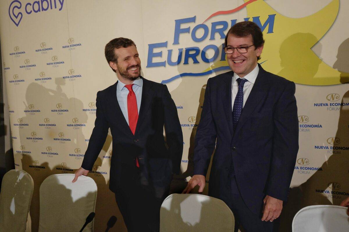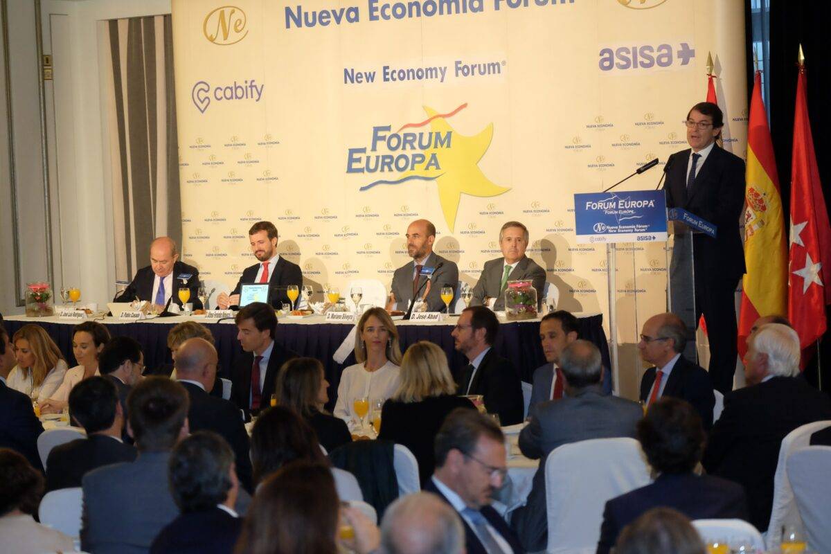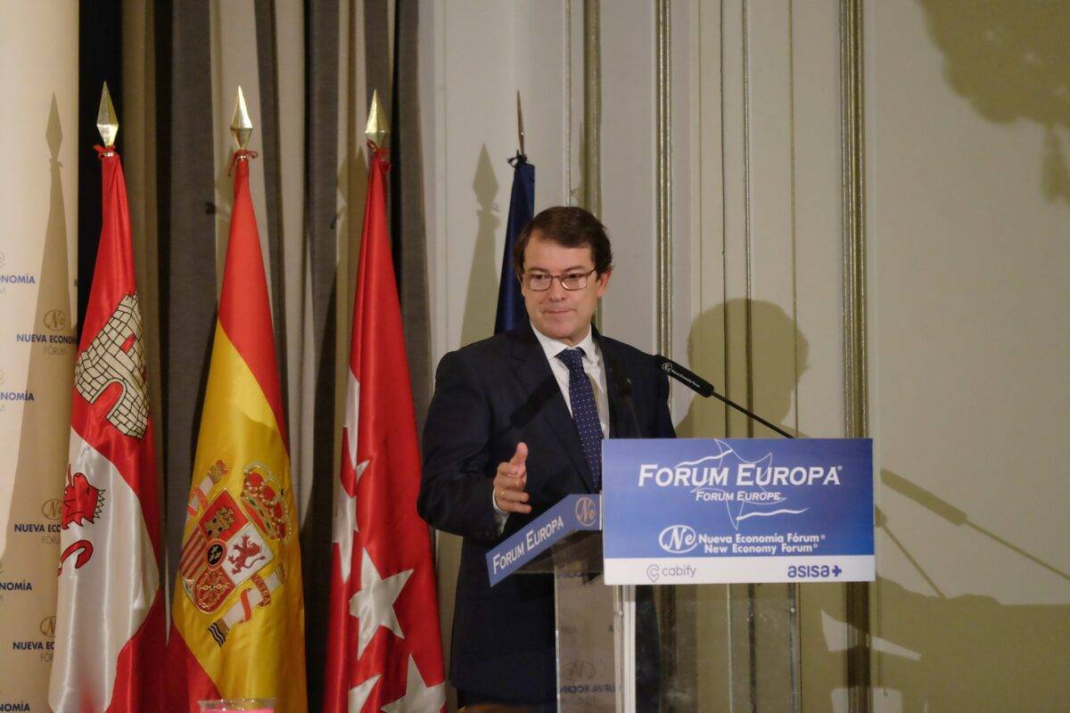 El presidente de la Junta, Alfonso Fernández Mañueco, ha participado hoy en Madrid en un desayuno informativo organizado por Nueva Economía, en el que ha reivindicado el protagonismo de Castilla y León para ejercer un liderazgo político y social en España.