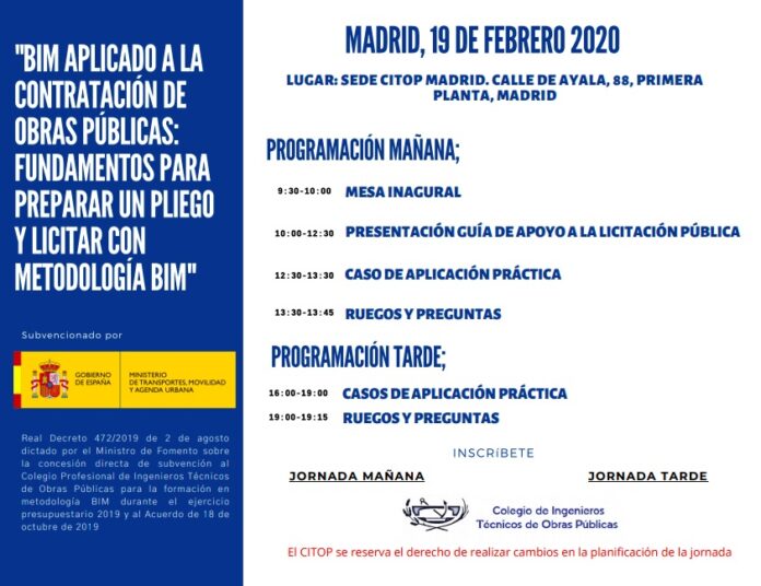 CITOP Madrid acoge la jornada «BIM aplicado a la contratación de Obras Públicas. Fundamentos para preparar un pliego y licitar con metodología BIM»