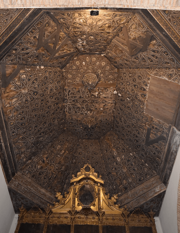 El tratamiento de la ornamentación de la armadura consistirá en una fijación previa de las policromías, la eliminación de añadidos, la recuperación volumétrica de la carpintería de lazo perdida, limpieza, reintegración cromática y aplicación de capa de protección.