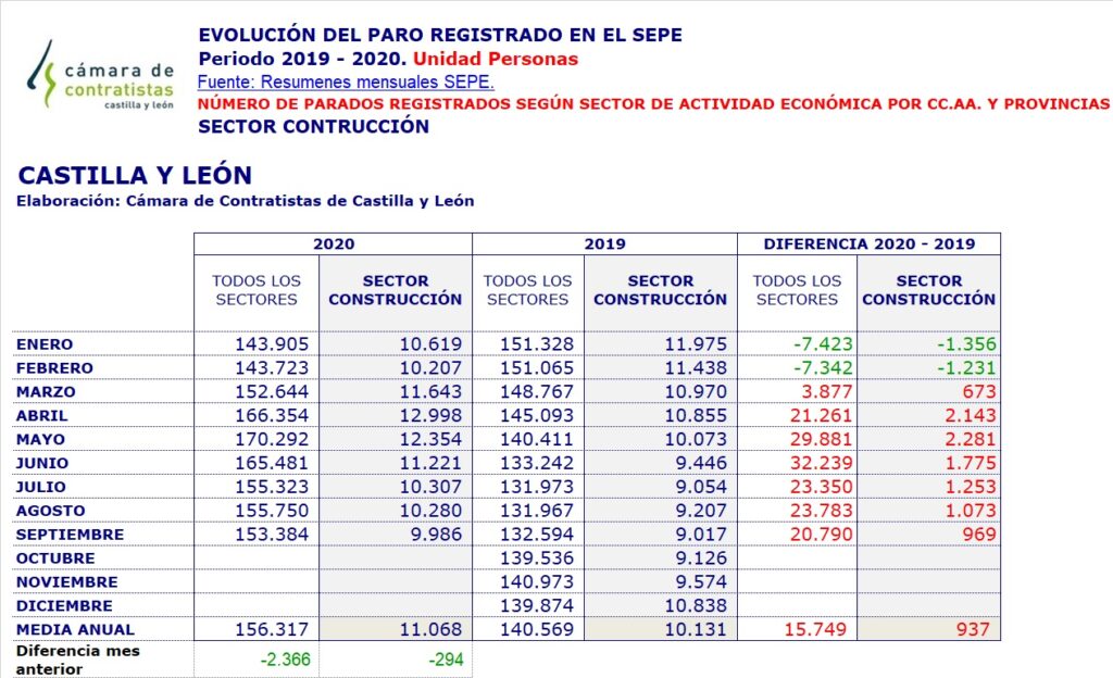 - El Sector Construcción registra 294 parados menos que el mes anterior en Castilla y León.